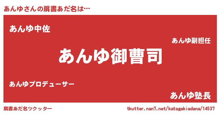 | 意味不明あだ名 | 『ペロリンあんゆ』『なめこ科あんゆ属』 |