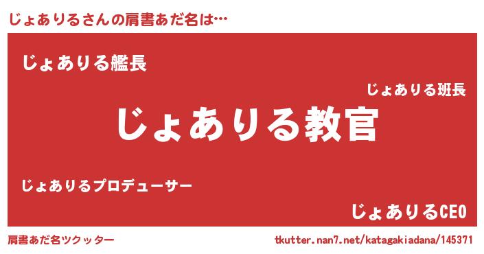 | 男性向けラノベタイトル風あだ名 | 『この素晴らしい世界にじょありるを!』 |