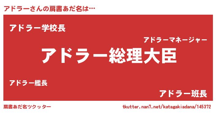 | ヘコむあだ名 | 『豆乳』『アドを』『アドラー(笑)』 |