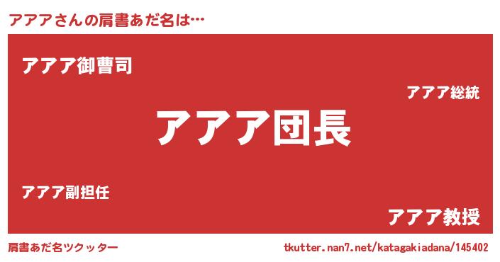 | ヒーロー風カッコイイあだ名 | 『黄金騎士アア』『スーパーアアア』 |