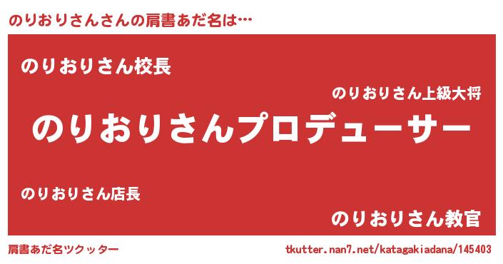 | ヘコむあだ名 | 『のりおりさん(遠い目)』『のりにゅー』 |