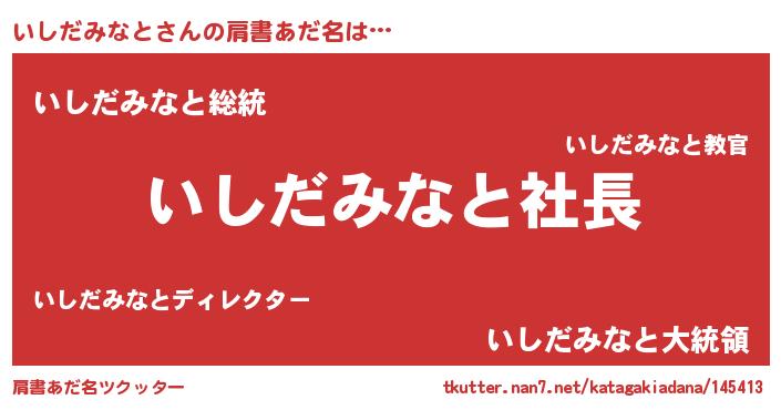 | ヒーロー風カッコイイあだ名 | 『スーパーイシダミナト』『仮面イシダー』 |