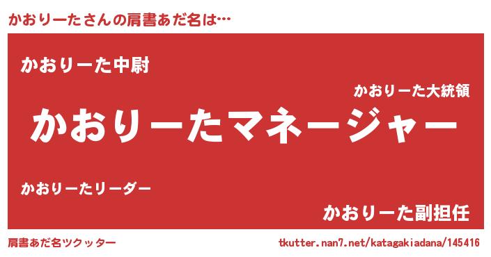| 男性向けラノベタイトル風あだ名 | 『はたらくかおりーたさま!』 |