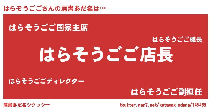 | 男性向けラノベタイトル風あだ名 | 『ハラソウゴゴアートオンライン』 |