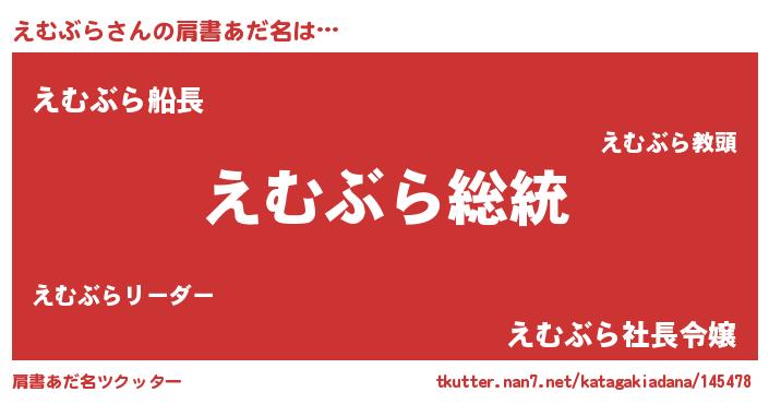 | 意味不明あだ名 | 『自称えむぶら』『ペロリンえむぶら』 |