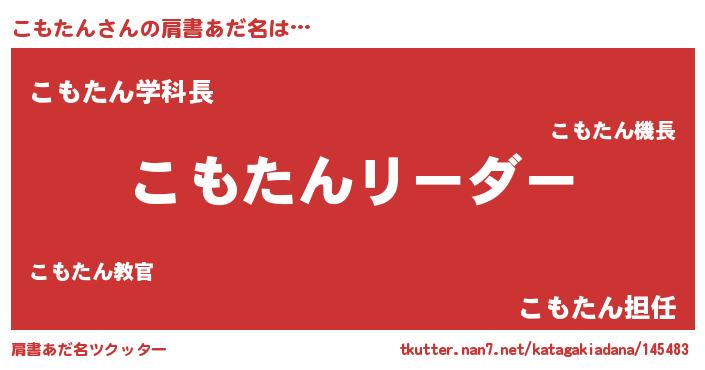 | 意味不明あだ名 | 『とにかく怪しいこもたん』 |