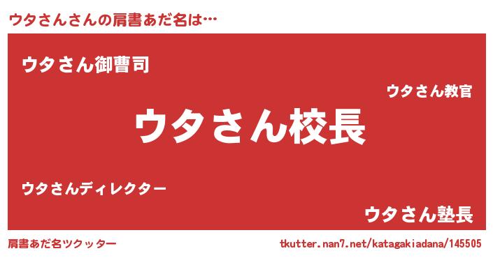 | 女子向けラノベタイトル風あだ名 | 『異世界で失敗しない100のウタさん』 |