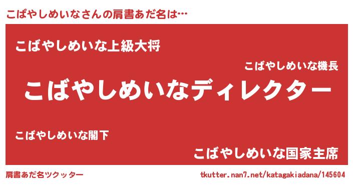 | 伝説のあだ名 | 『秘められし忍者こばやしめいな』 |