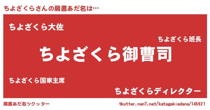 | 胡散臭い通販商品みたいなあだ名 | 『必ず成功する霊験あらたかなお札…その名も「ちよざくら」』 |