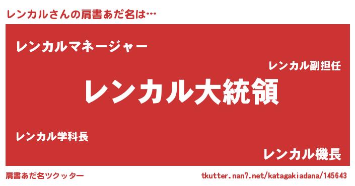 | ポケモン風あだ名 | 『レンカダネ』『レンゴンZ』 |