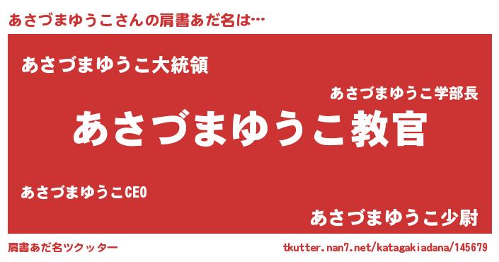 | 女子向けラノベタイトル風あだ名 | 『悪役あさづまゆうこに転生したようですが、知った事ではありません』 |