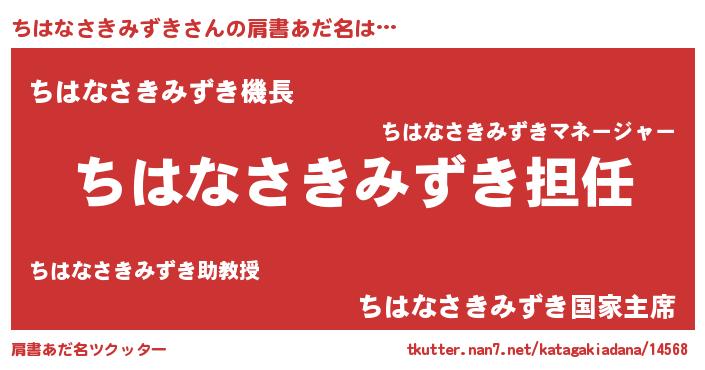 | ヒーロー風カッコイイあだ名 | 『ネオチハナサキミズキ』『仮面チハダー』 |
