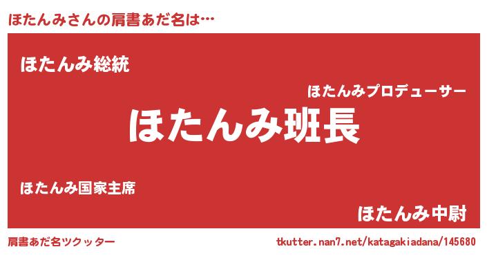 | 女子向けラノベタイトル風あだ名 | 『ほたんみは平凡を望む』 |