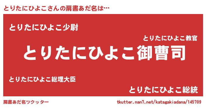 | 胡散臭い通販商品みたいなあだ名 | 『モテモテ間違いなし霊験あらたかなお札…その名も「とりたにひよこ」』 |
