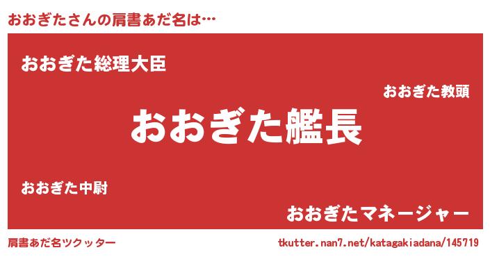 | 男性向けラノベタイトル風あだ名 | 『緋弾のオオギタ』『オオギタスレイヤー』 |