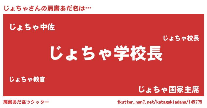| ヒーロー風カッコイイあだ名 | 『慈愛の使者じょちゃ』『ネオジョチャ』 |