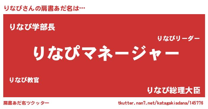 | ヘコむあだ名 | 『なまこ酢』『りなお』『りなにゅー』 |
