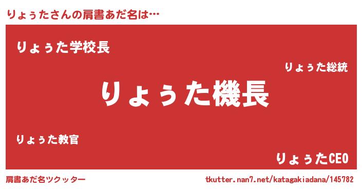 | ヒーロー風カッコイイあだ名 | 『慈愛の使者りょぅた』『仮面リョダー』 |