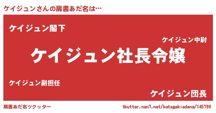 | 男性向けラノベタイトル風あだ名 | 『ケイジュンの憂鬱』 |