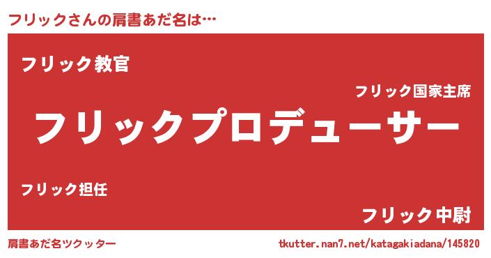 | 意味不明あだ名 | 『住所不定無職フリック(71歳)』 |