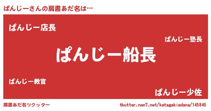 | 欧米人風あだ名 | 『ぱんじー・ステッグマイヤー』 |