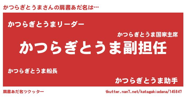 | ヘコむあだ名 | 『かつらぎとうま(震え声)』『かつぷりん』 |