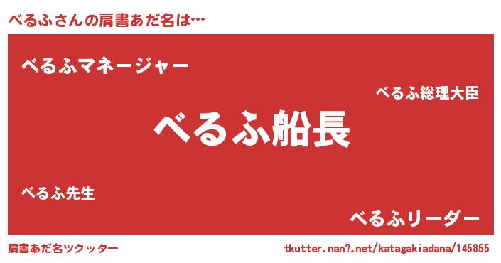 | 意味不明あだ名 | 『とにかく怪しいべるふ』 |