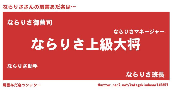 | 伝説のあだ名 | 『伝説のスナイパーならりさ』 |