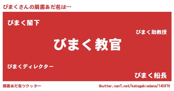 | 意味不明あだ名 | 『住所不定無職びまく(85歳)』『自称びまく』 |