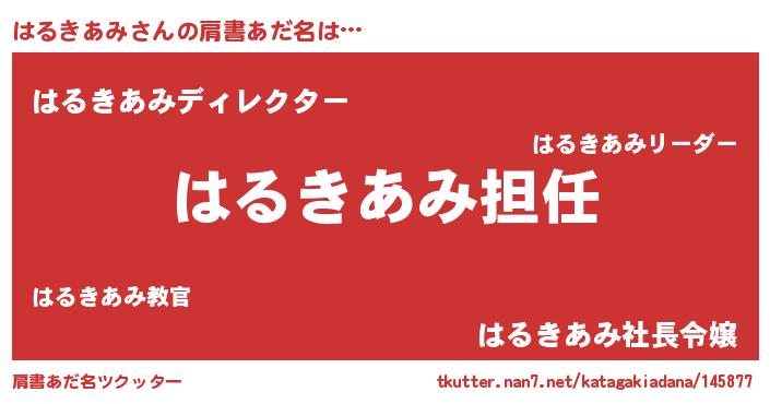 | 男性向けラノベタイトル風あだ名 | 『誰もが恐れるあのはるきあみが、ぼくの専属メイドになるようです。』 |