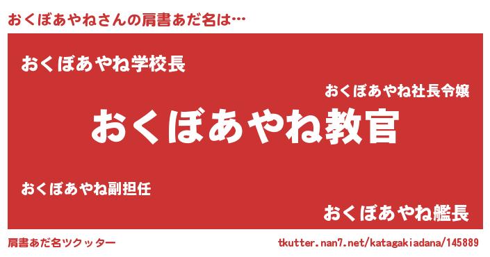 | 男性向けラノベタイトル風あだ名 | 『魔弾の王とおくぼあやね』 |