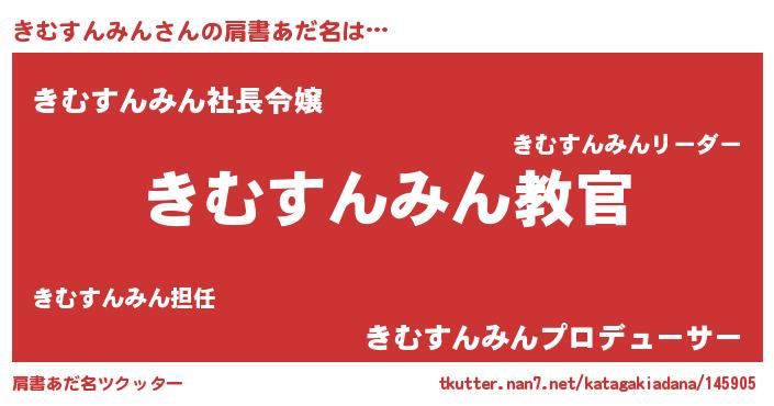 | 意味不明あだ名 | 『住所不定無職きむすんみん(84歳)』 |
