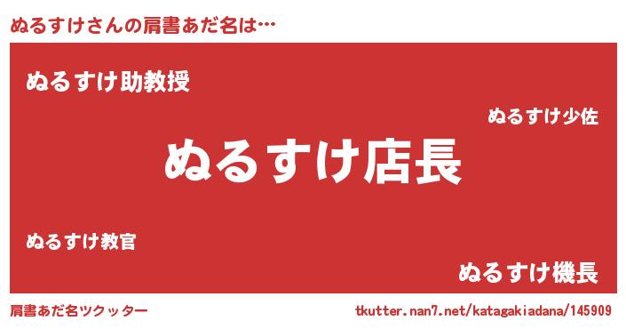 | ポケモン風あだ名 | 『ヌルチュウ』『ヌックウザ』 |