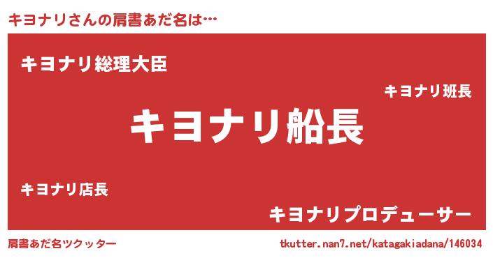 | 意味不明あだ名 | 『キヨナリフォーエバー』 |