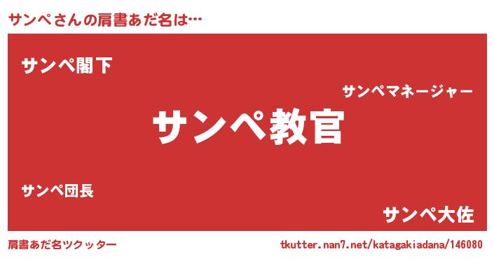 | 男性向けラノベタイトル風あだ名 | 『この素晴らしい世界にサンペを!』 |