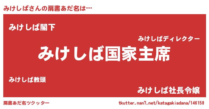 | 意味不明あだ名 | 『みけしばフォーエバー』『自称みけしば』 |