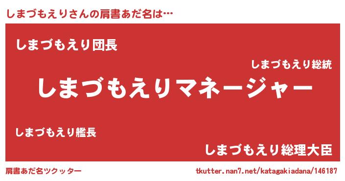 | 男性向けラノベタイトル風あだ名 | 『はたらくしまづもえりさま!』 |