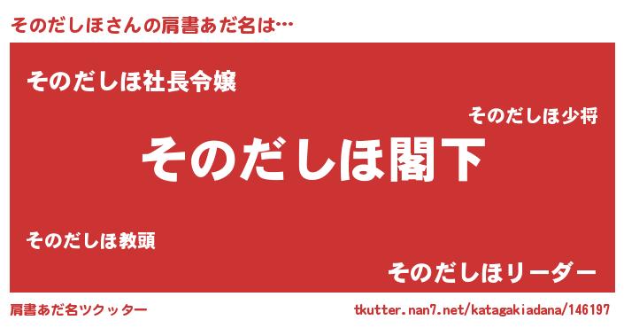 | 男性向けラノベタイトル風あだ名 | 『Re:そのだしほから始める異世界生活』 |