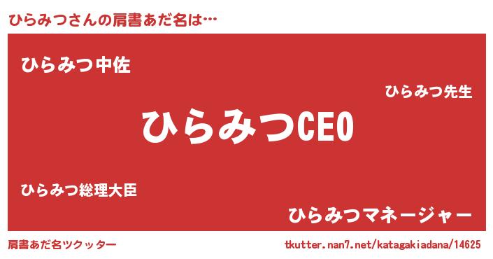 | 男性向けラノベタイトル風あだ名 | 『ひらみつの憂鬱』 |