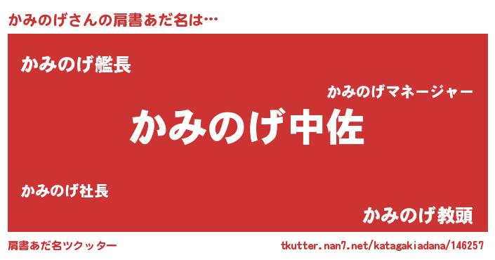 | 男性向けラノベタイトル風あだ名 | 『カミノゲスレイヤー』『緋弾のカミノゲ』 |