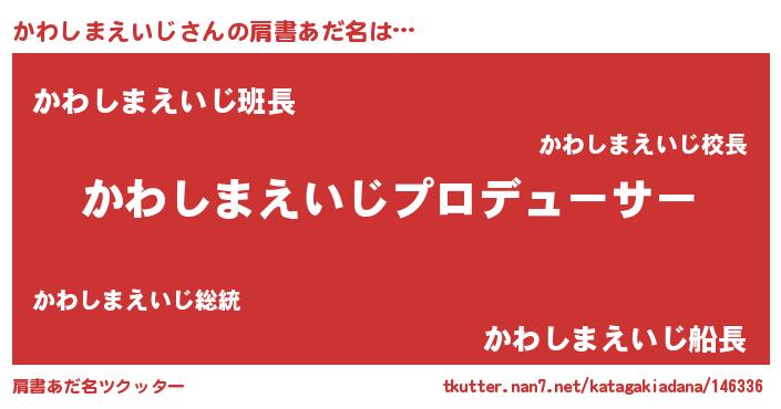 | ポケモン風あだ名 | 『カワゴンZ』『ヒカワシマエイジ』 |