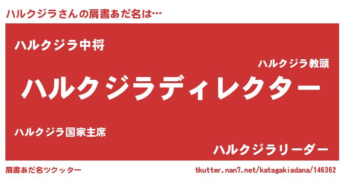 | ヒーロー風カッコイイあだ名 | 『幻影騎士ハル』『ネオハルクジラ』 |