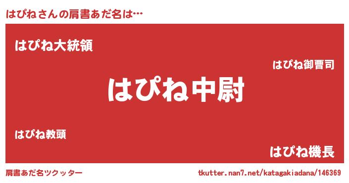 | ヘコむあだ名 | 『つくし』『はぴもー』『はぴっちょ』 |