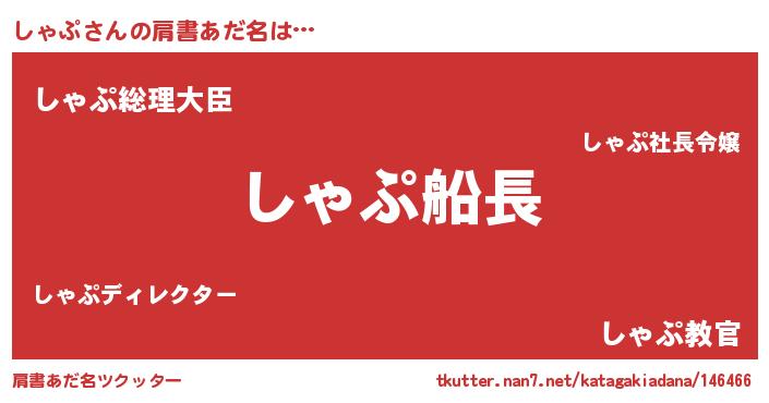 | 恥ずかしいあだ名 | 『しゃっちょ』『プリティーしゃぷ』 |