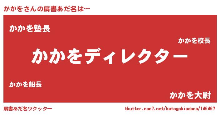 | 男性向けラノベタイトル風あだ名 | 『はたらくかかをさま!』『緋弾のカカヲ』 |