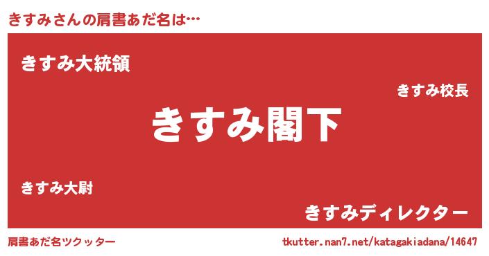 | 男性向けラノベタイトル風あだ名 | 『Re:きすみから始める異世界生活』 |