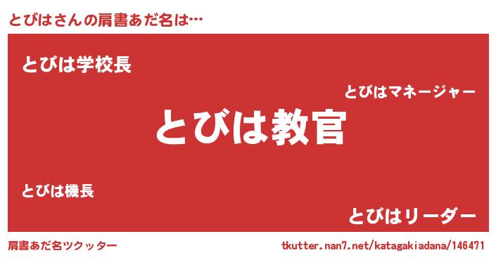 | ヒーロー風カッコイイあだ名 | 『仮面トビダー』『正義の使者とびは』 |