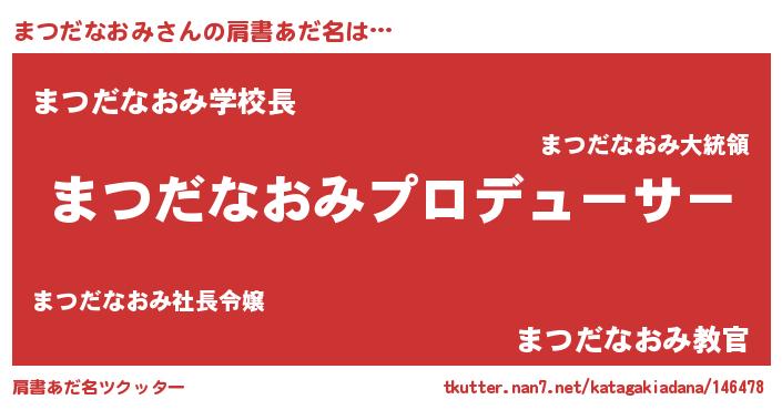 | 男性向けラノベタイトル風あだ名 | 『まつだなおみに滅ぼされるだけの簡単なお仕事です』 |