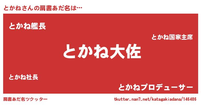 男性向けラノベタイトル風あだ名 | 『トカネスレイヤー』『とかねの憂鬱』 |