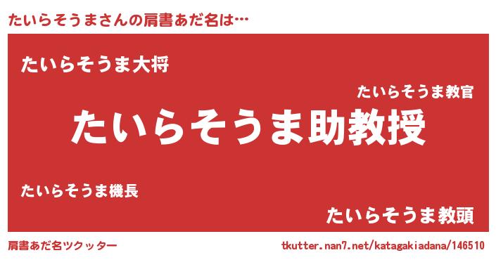 | ヒーロー風カッコイイあだ名 | 『正義の使者たいらそうま』 |